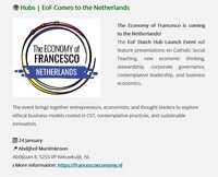 2025年EoF foundation発足以来、各国支部であるEoF Hubが続々と立ち上がる中、本命と思われるEoF Hub Netherlandsが、今日(20260124)発足する。「本命」というのはこのEoF Hubが、Tilburg Universityという「カトリック経済学」研究に特化した大学が主催するHubだからだ。